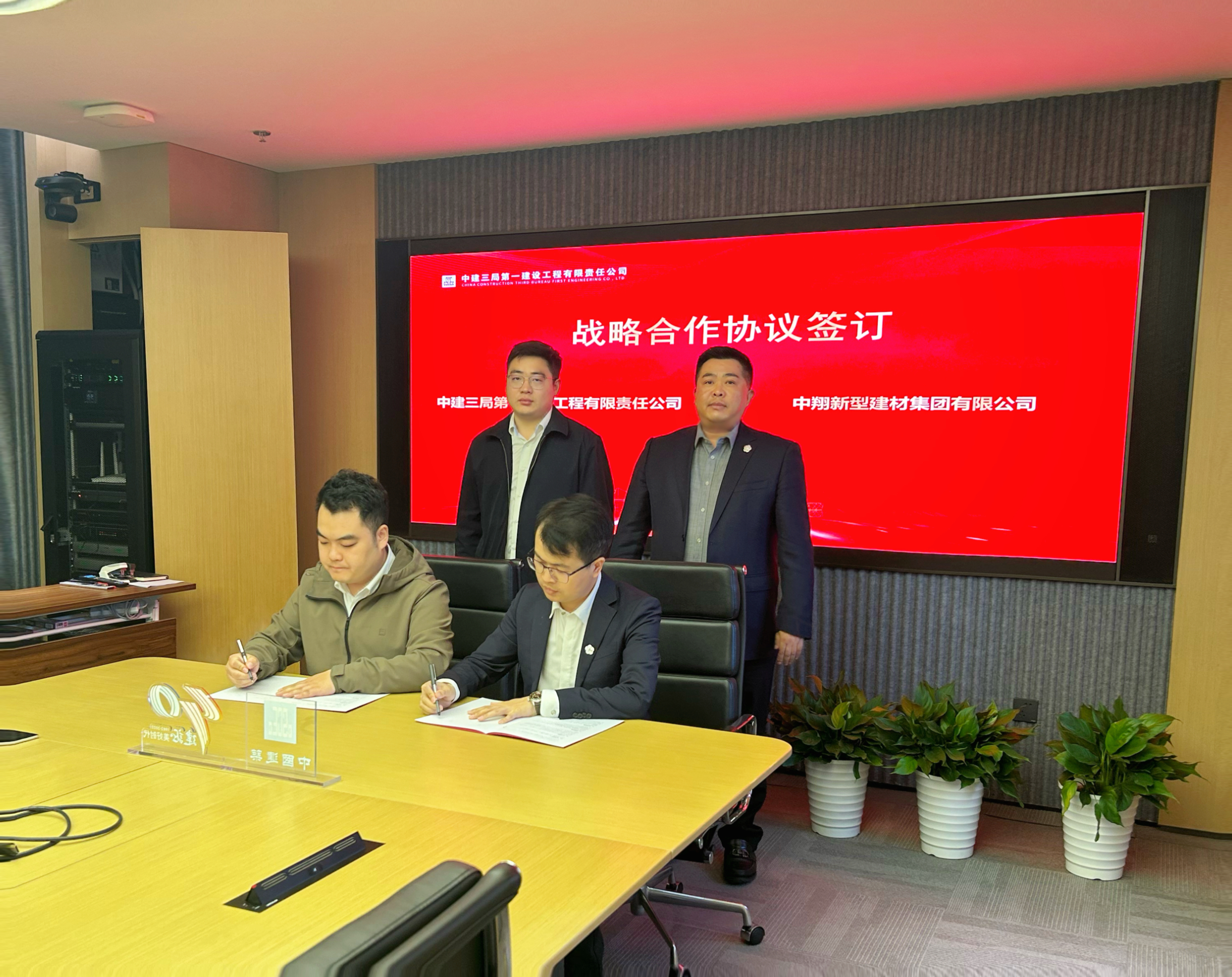 12月26日,中翔新型建材集团有限公司(简称“中翔集团”)与中建三局第一建设工程有限责任公司(简称“中建三局一公司”)战略合作签约仪式在武汉圆满举行。中翔集团总裁王永祥、西南事业部总经理刘克兵,中建三局一公司供应链管理部方总出席本次签约仪式。此次战略协议的签署,标志着双方的合作迈进了全方位深度合作新台阶。此次战略合作签约是公司战略布局,稳步发展,核心配送能力持续获得市场核心客户认可的重要里程碑。